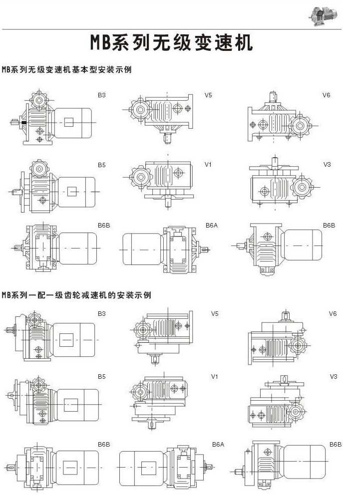 基本安裝示例MB系列一配一級齒輪減速機(jī)的安裝示例