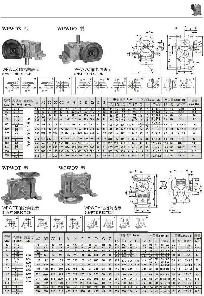 WPWDX,WPWDO,WPWDT,WPWDV型型號(hào)參數(shù)圖表